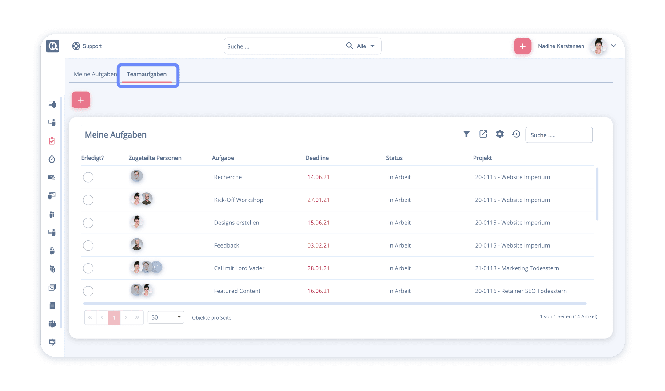 Unter Mein helloHQ / Meine Aufgaben findet ihr ab sofort den brandneuen Reiter Teamaufgaben. Dort werden euch alle Aufgaben eures Teams angezeigt (vorausgesetzt, ihr habt die entsprechende Berechtigung).