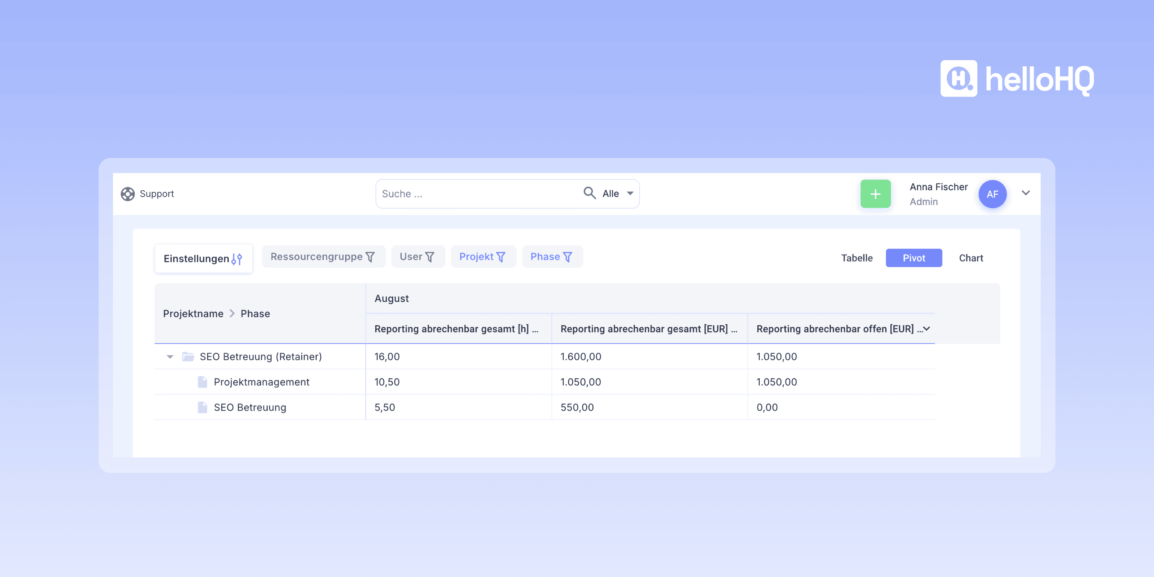 👉 Controlling Reporting 2.0: Das Modul steht nun auch in 2.0 zur Verfügung. Neu hier: die Pivotierung nach Projekt-Phasen.