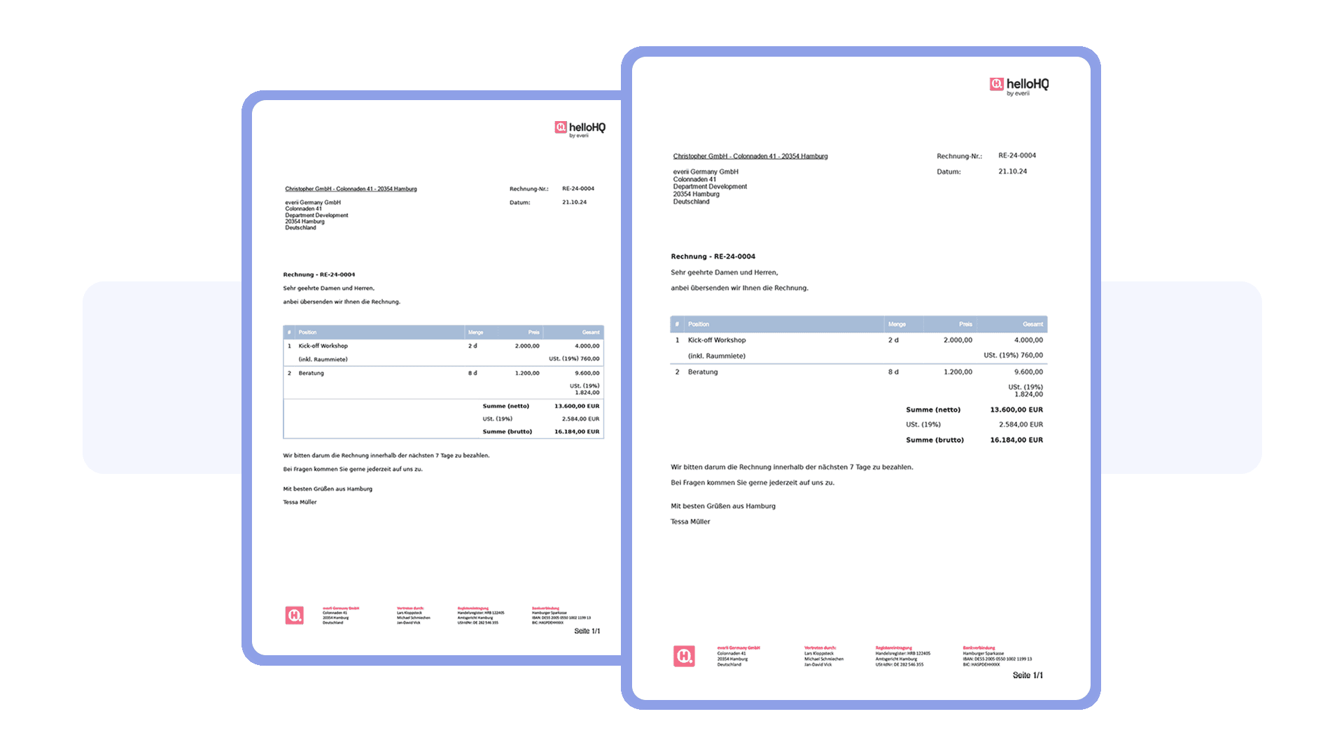 Viele von euch haben sehnsüchtig auf diese Neuerung gewartet und wir freuen uns, eurem Wunsch nun mit dem Release „Wilhelmsburg“ nachzukommen: Ab jetzt findet ihr in der Dokumentbearbeitung zusätzliche Einstellungen, um Zwischenlinien in Tabellen auch ohne Rahmen nutzen zu können. Das verleiht euren Angeboten, Rechnungen und Co. einen cleaneren Look. Zudem können erstellte Dokumentenvorlagen nun auch über die unterschiedlichen Dokumenttypen hinweg kopiert werden. Damit könnt ihr in wenigen Klicks aus beispielsweise einer Angebotsvorlage auch eine Rechnungsvorlage erstellen.